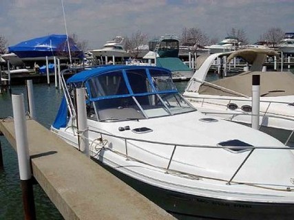 1994 Rinker Fiesta Vee 28' Cruiser, Twin 205HP Mercruiser 4.3L Engines, Tri-axle trailer, Bimini top, convertible top, mooring cover-blue, side/aft curtains, anchor davit, bow pulpit w/ rail, radar arch, 12 volt system, 30 amp dockside power, battery charger, battery switch, battery-3, dockside cord, compass, depth-finder, depth-sounder, engine alarm, engine synchronizer, fish-finder, GPS, vhf radio, alcohol/electric stove, microwave, refrigerator.